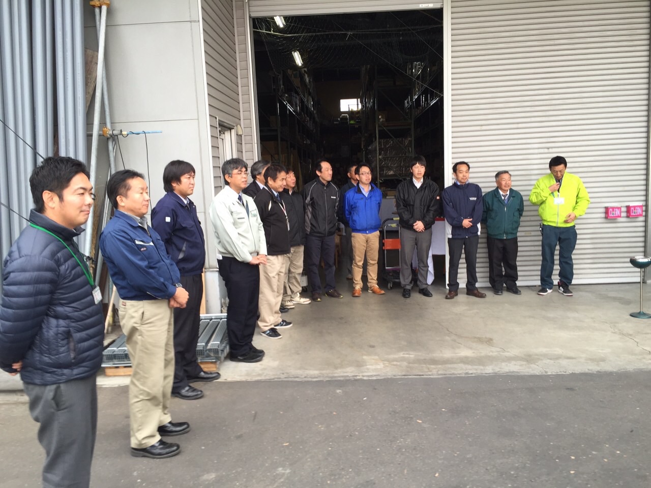 毎回、展示会が始まる前にカネマツスタッフとメーカーさんが集合して気合のご挨拶をします。本当にいつも暖かい日や寒い日にも来てくださりありがとうございます☆