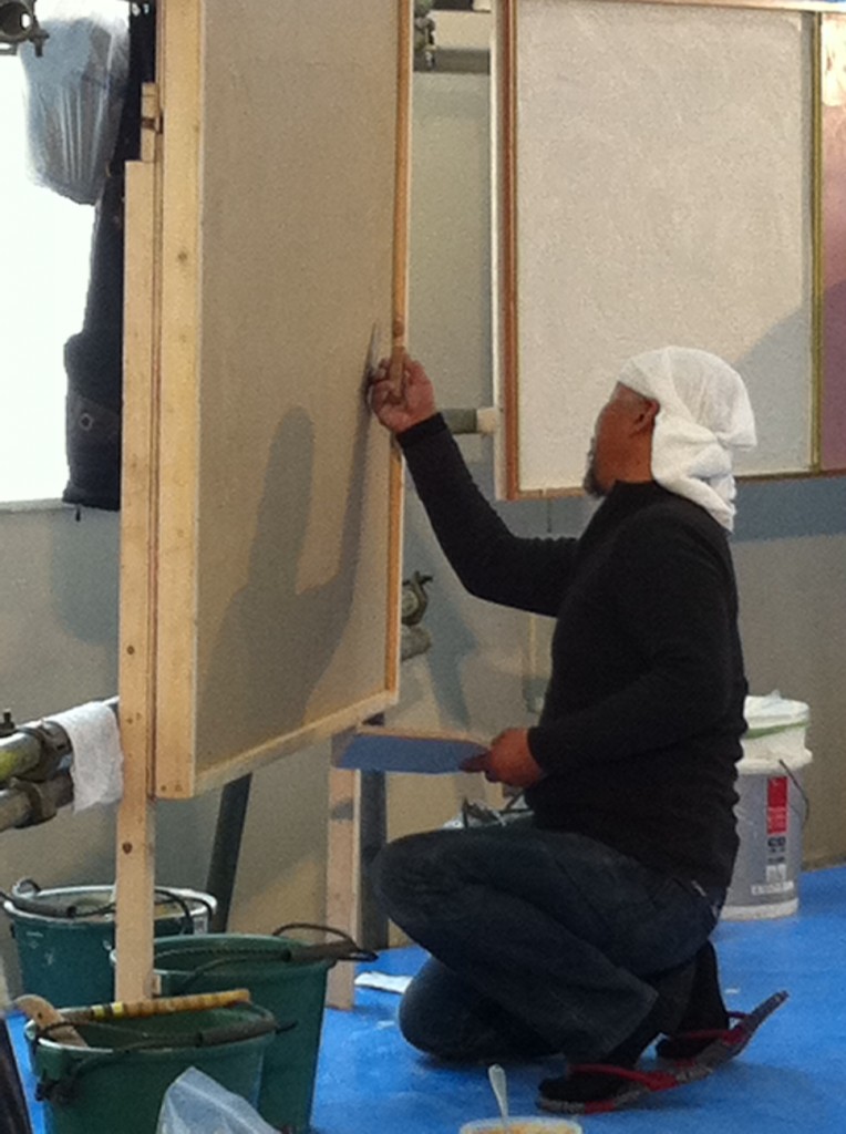 これは『忍者左官』の小沼さんの『大津磨き』のデモンストレーションです。