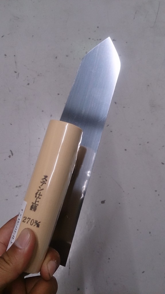 撮影上先が怪しく光っていますが(^_^;)この鏝は先端部分を活かして、塗りにくい隅や細かいか所の塗りに最適な鏝です。