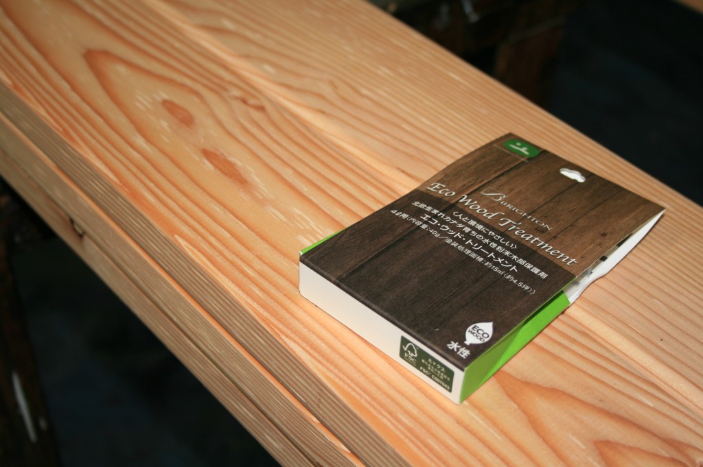 さて前回は自然健康塗料、リボス社の塗料についてお伝えしましたが、今回は無垢の木材に使用する”水性粉末木部保護剤”の 『エコウッドトリートメント』について書いてみたいと思います。
